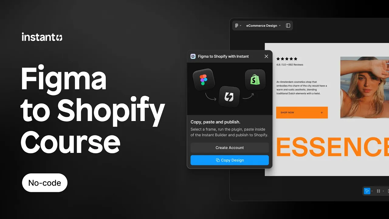 In this course you'll learn how to build responsive Shopify stores faster with the Figma to Shopify plugin by Instant. Copy and paste any Figma frame to Instant and publish to your Shopify store in seconds without code.