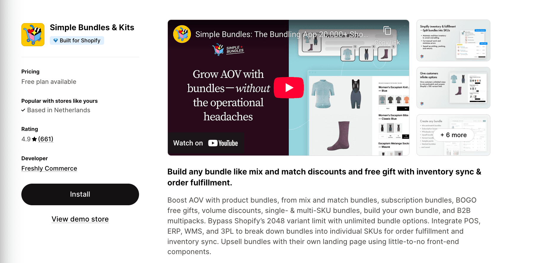 Simple Bundles & Kits | 4.9★ (661) | Inventory sync & fulfillment automation | 3 bundles max | $24/mo |