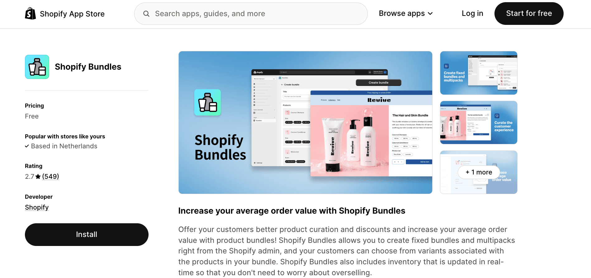 Shopify Bundles | 2.7★ (549) | Simple fixed bundles & multipacks | None (free forever) | Free forever |