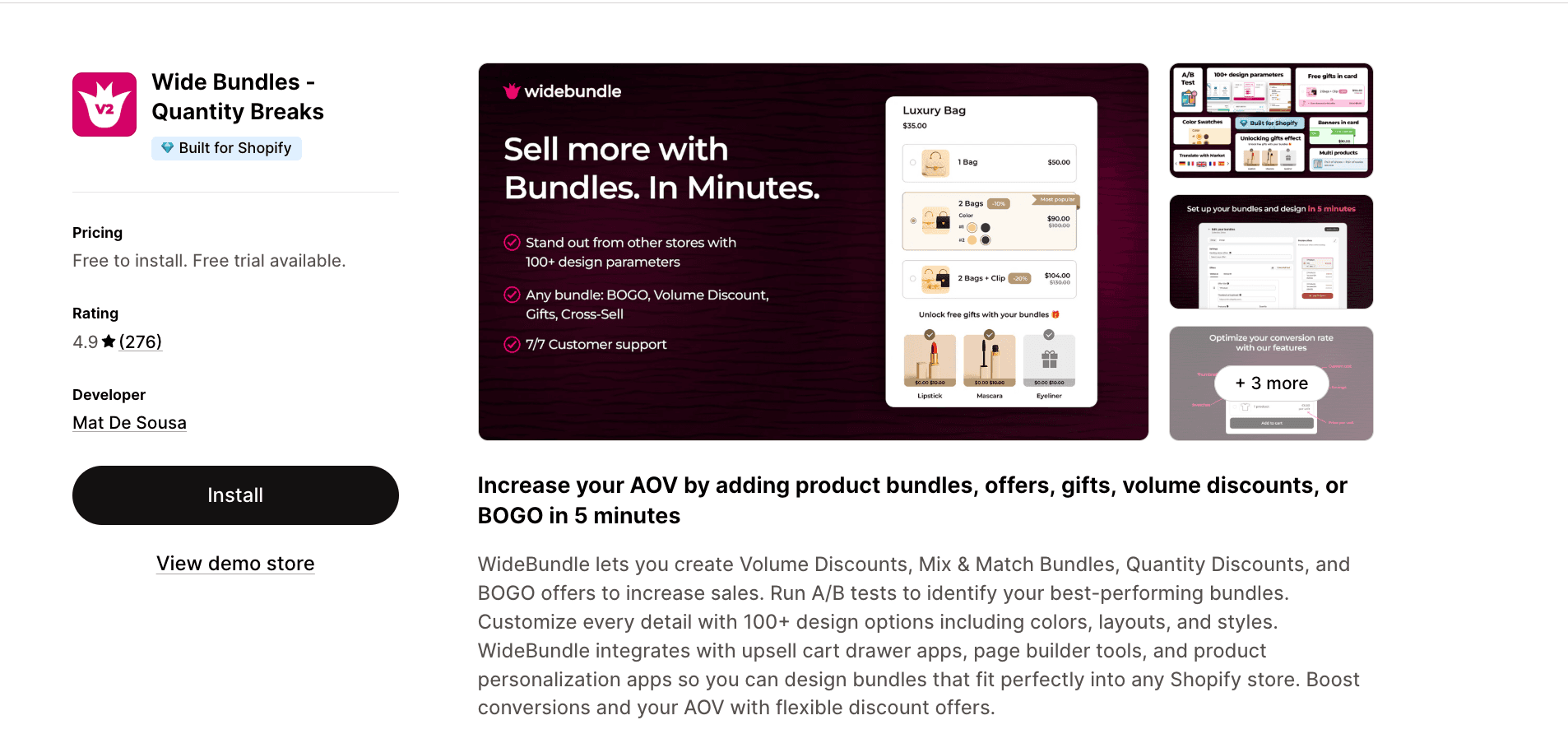 Wide Bundles | 4.9★ (276) | Extensive customization options | Development stores only | $14.99/mo |