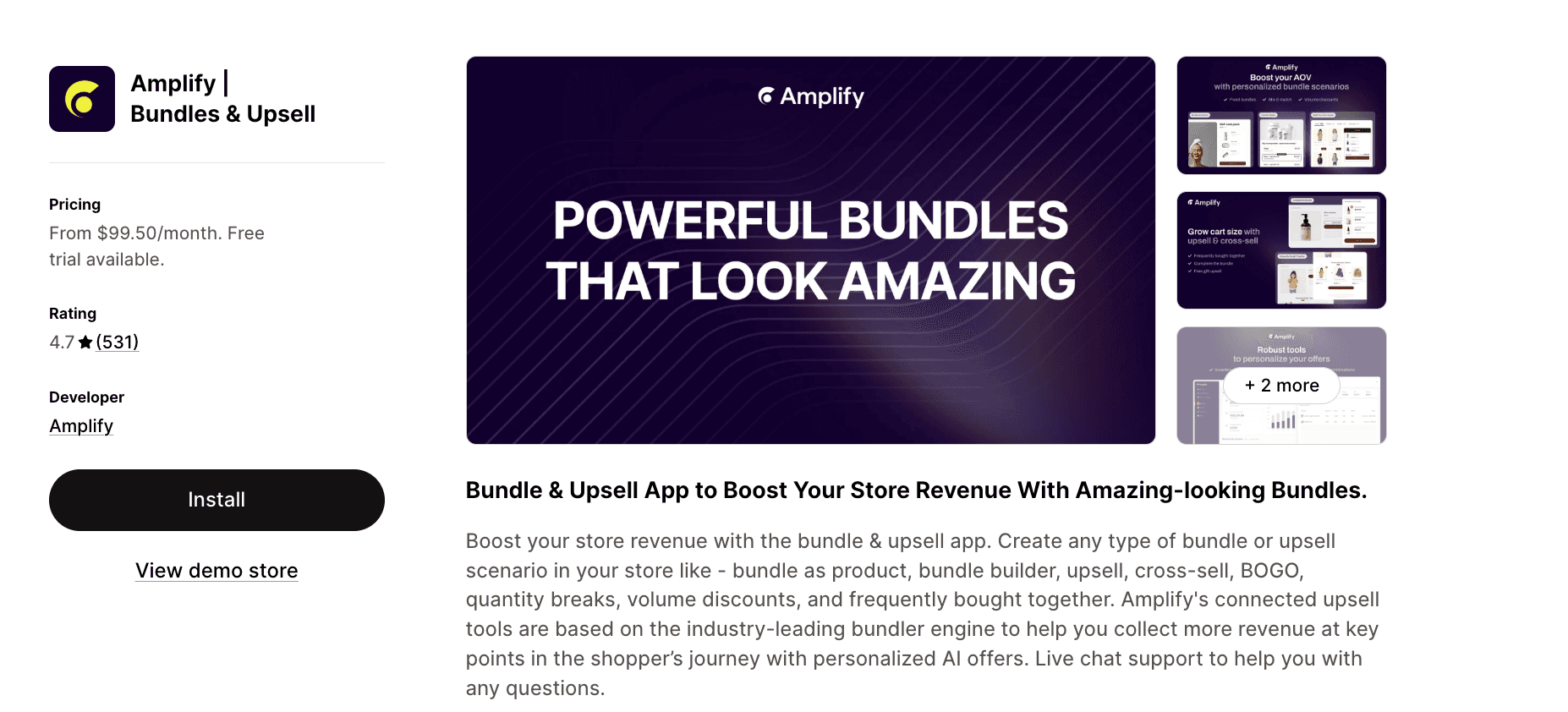 Amplify Bundles & Upsell | 4.7★ (531) | AI-powered personalization & advanced upsells | No free plan | $99.50/mo |