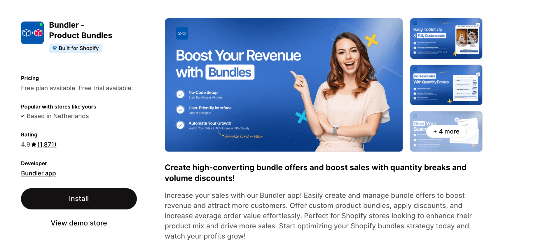 Bundler | 4.9★ (1,871) | Unlimited free bundle building | No limits | $9.99/mo |