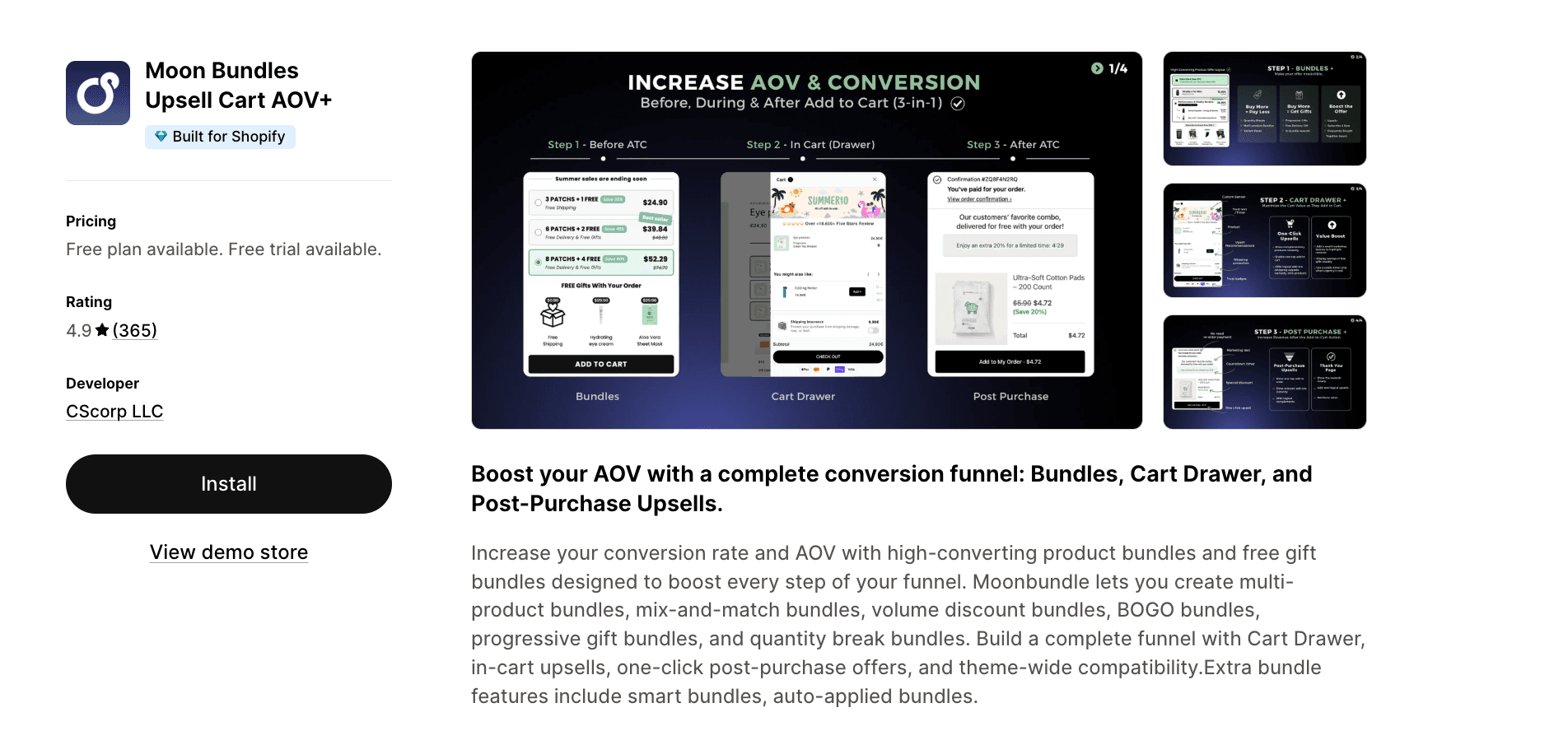 Moon Bundles Upsell Cart AOV+ | Product & Free gift bundles | 4.9 stars, 350+ reviews | $14.99 - $59.99/month |