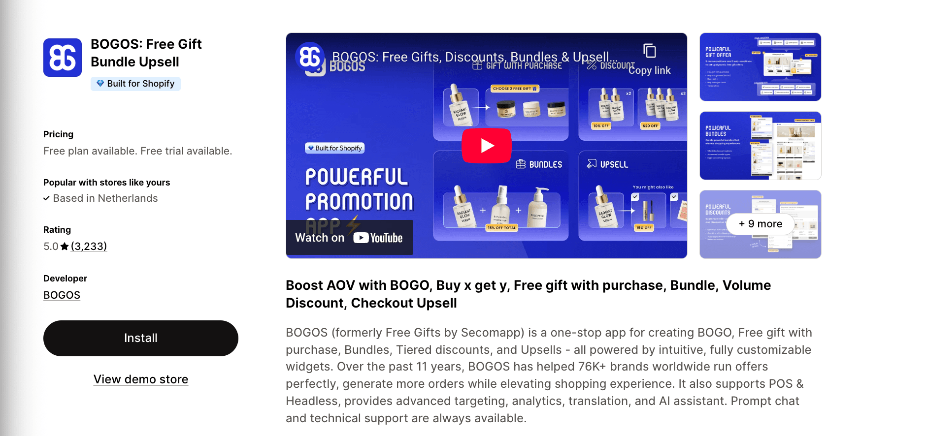 BOGOS: Free Gift Bundle Upsell | BOGO, Free gift, volume discounting | 5.0 stars, 3,000+ reviews | $29.99 - $109.99/month |