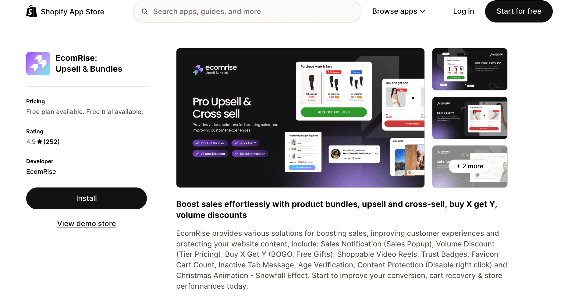 EcomRise: Upsell & Bundles | Volume discount & Buy X Get Y | 4.9 stars, 250+ reviews | $9.99/month |