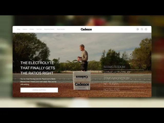 A comparison-focused page positioning Cadence's three-product hydration system against "flawed" competitors. This page targeted sophisticated buyers already in the market, leading with sodium ratios and elite athlete endorsements. The strategic choice: replace comparison shopping with a complete solution.